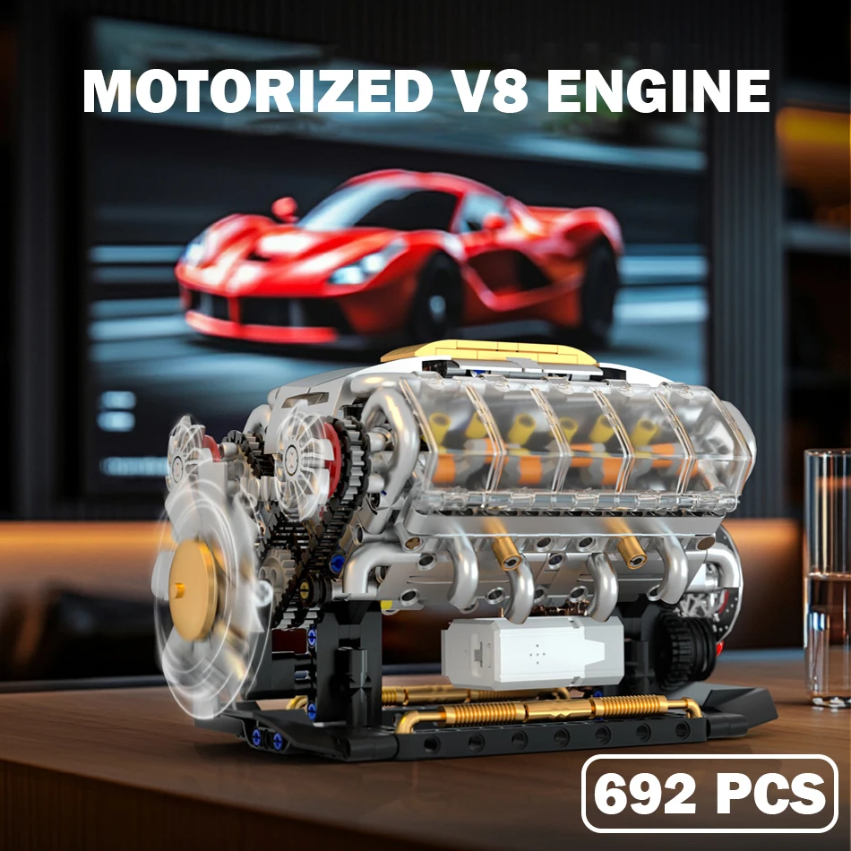 692 PCS MOC Technical Motorized V8 Engine Model Building Blocks Car Electrically Driven Engine Supercar Bricks Toys for Kid Gift
